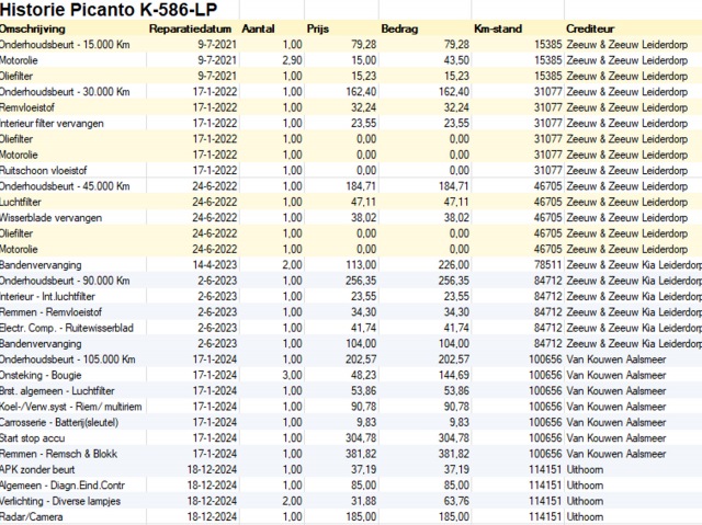Zeer goed onderhouden Kia Picanto 1.0 MPi Comfortline van 1e eigenaar. Onderhoudsboekje en onderhoudshistorie aanwezig. N.A.P. aanwezig. Origineel NED-Picanto. Altijd bij Kia dealer in onderhoud geweest. Facturen van onderhoud aanwezig. Zeer luxe uitvoering met o.a. Cruise Control, DAB, Airco, Centrale deurvergrendeling met afstandsbediening, Elektrische ramen en nog veel meer. Zowel van binnen als buiten zeer nette Picanto.