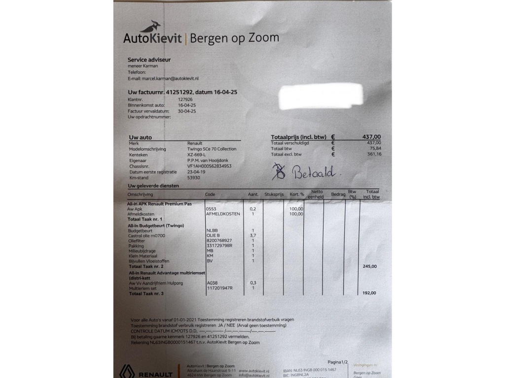 Wegenbelasting€ 93 p/kw info